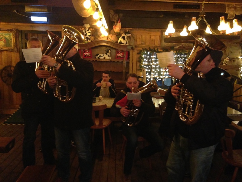 Nach einer kurzen Erholungspause ging es dann mit zwei Bussen zum Nachbarort Weiterdingen. Dort feierte man gerade das Scheunenfest, in dessen Rahmen die beiden Kapellen ein großes volkstümliches Konzert aufführten. Das zahlreiche Publikum war recht begeistert und beide Dirigenten zeigten sich hoch zufrieden von der Leistung der über 60 Musiker, zumal es keine Gelegenheit gegeben hatte, gemeinsam zu üben. Anschließend wurde weit über Mitternacht hinaus in der Aprés Schür ausgelassen gefeiert.