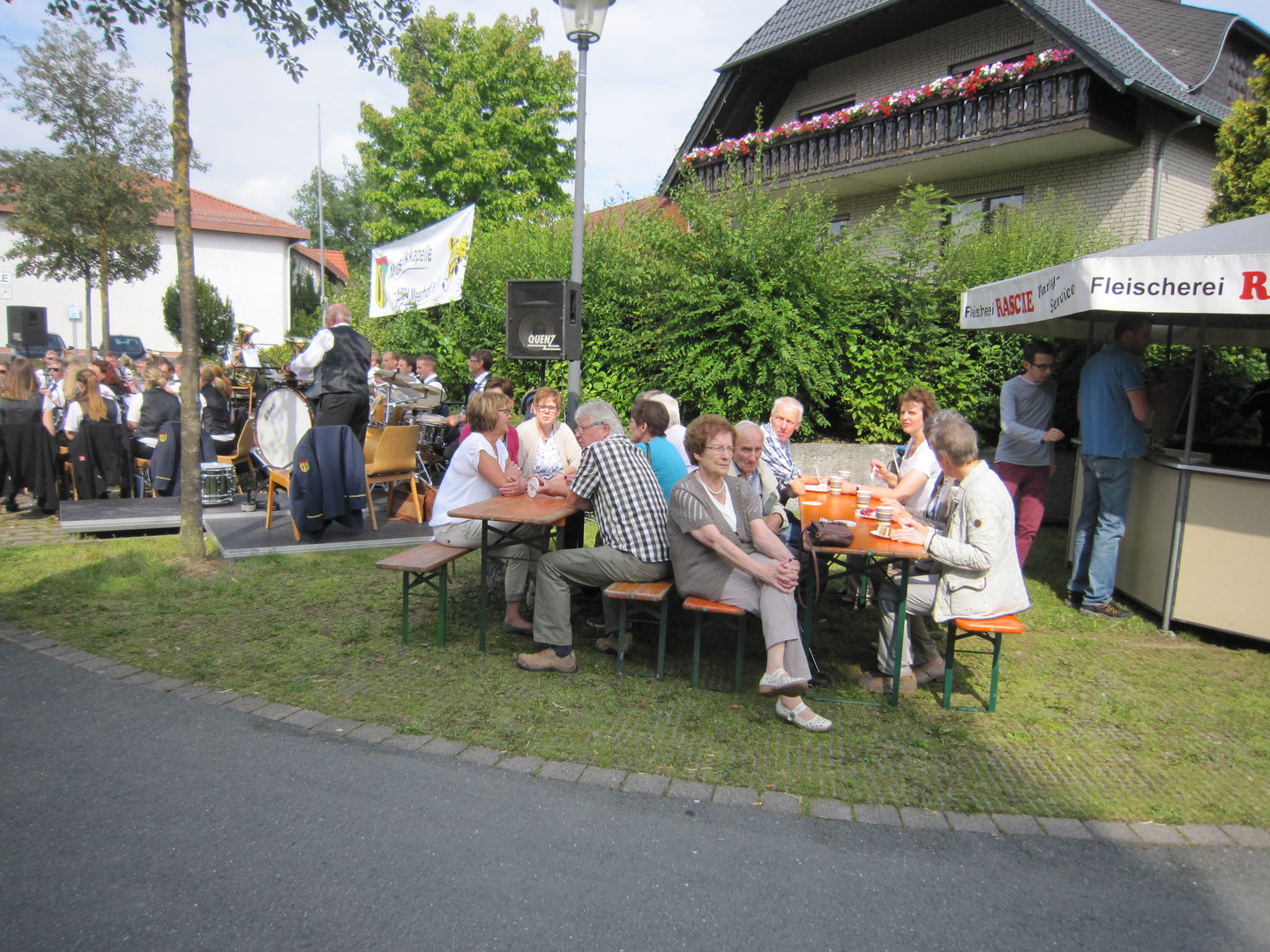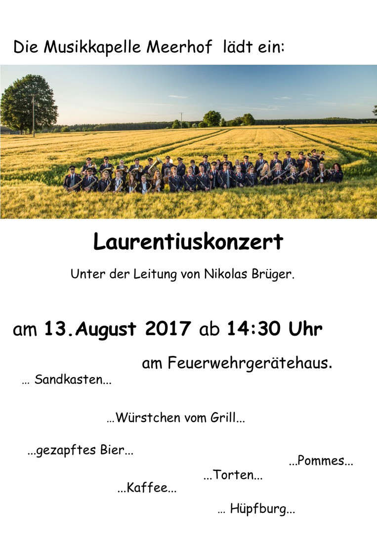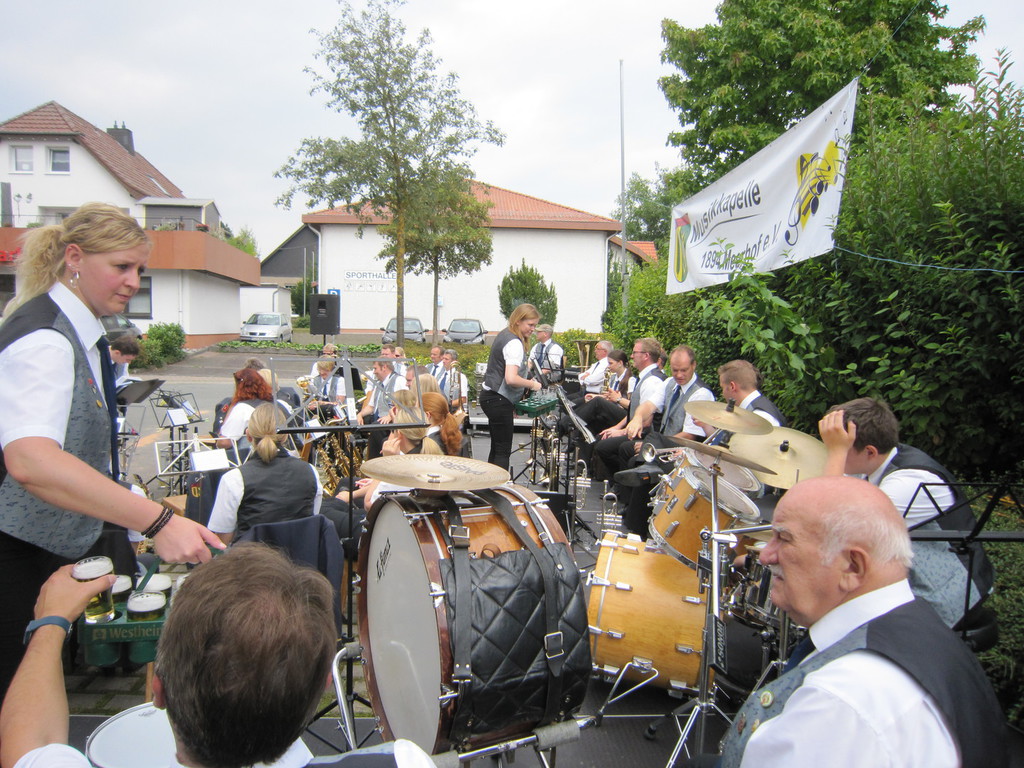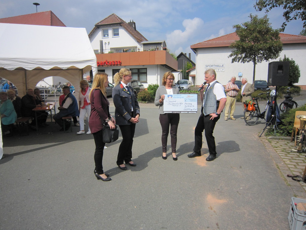 Zum traditionellen Laurentiuskonzert hatte die Musikkapelle 1894 Meerhof auch dieses Jahr wieder geladen. Bei Sonnenschein und vor einem großen Publikum wurde das aktuelle Konzertprogramm und auch einige Stücke aus der Unterhaltungsmusik vorgetragen. Unter den Gästen befand sich auch Petra Bunte von der Volksbank Marsberg, die dieses Konzert nutzte und der Musikkapelle einen Scheck in Höhe von 1.000,-€ übergab. Durch diese Spende konnte der Proberaum der Musikkapelle, in der „Alten Schule“ renoviert werden.
