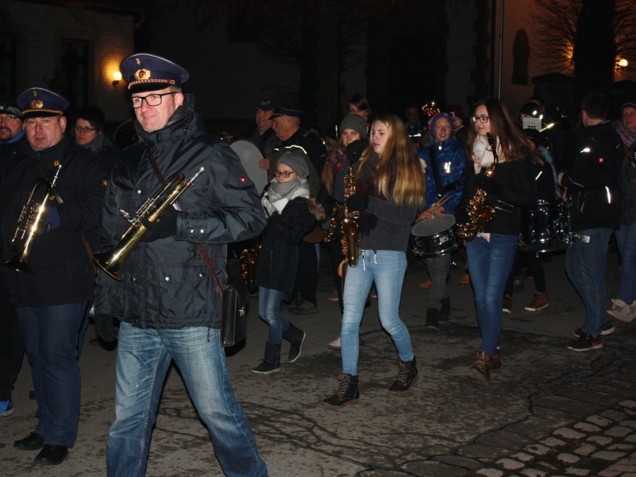 Erstmals unterstützten uns die Nachwuchsmusiker beim St. Martinsumzug in Meerhof. Für die jungen Musiker war es der erste gemeinsame Auftritt zusammen mit der Stammkapelle. Die Musiker wurden im Vorfeld mit Noten ausgestattet und bekamen eine Beleuchtung an ihr Instrument. So konnten Sie auch bei der Dunkelheit die Noten lesen. Die Musiker leisteten die Aufgaben mit Bravur. Weitere Auftritte sind schon in Planung.