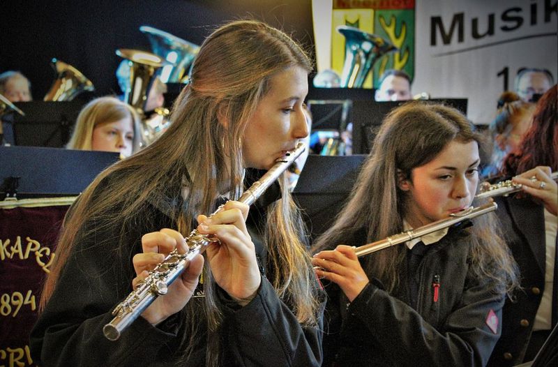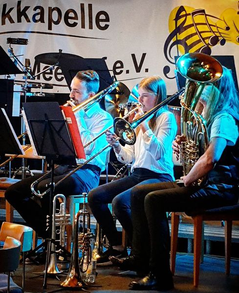 Maria Paschen (Klarinette), Marlon Palsmeier (Schlagzeug), Jakob Flocke (Trompete), Mia Niewels (Trompete), Anne Niewels (Tenorhorn), Marita Rießelmann (Alt-Saxophon) Greta Köster (Alt-Saxophon), Jule Fahle (Alt-Saxophon), Mara Thielemann (Trompete).