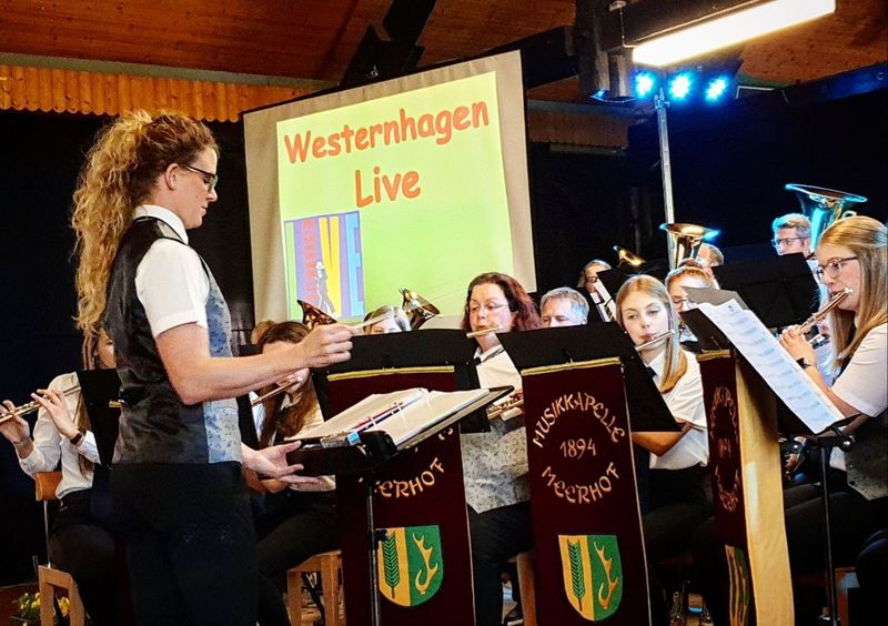 Nach intensiver Vorbereitungszeit spielten die Meerhofer Musikerinnen und Musiker erneut unter der Leitung Ihrer Dirigentin Andrea Agethen Konzertstücke, wie z.B. „Beauty and the Beast“ , „Westernhagen Live“ oder „Grönemeyer!“. Ebenso wurden einige volkstümliche Stücken wie z.B. „Wir leben Blasmusik“ oder „Berliner Luft“ vorgetragen.