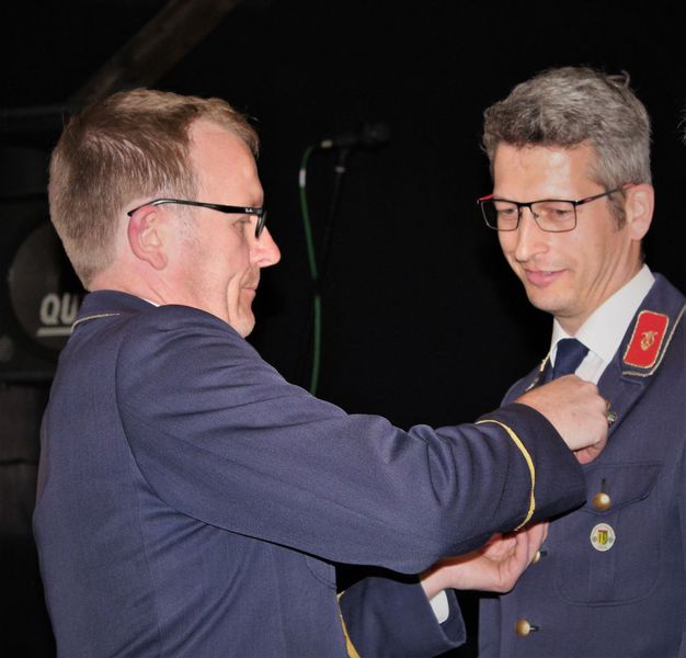 Zum Ende des ersten Teils wurden die Ehrungen vorgenommen. Es wurden für 30-jährigen Mitgliedschaft mit dem goldenen Abzeichen Ulrich Palsmeier, Stefan Schmidt und Cornelia Schleicher geehrt. Anschließend wurden für die sehr erfolgreiche Teilnahme am D1-Lehrgang Greta Köster, Jule Fahle, Anne Niewels, Marita Rießelmann, Mia Niewels, Mara Thielemann, Marlon Palsmeier, Maria Paschen und Jakob Flocke ausgezeichnet.